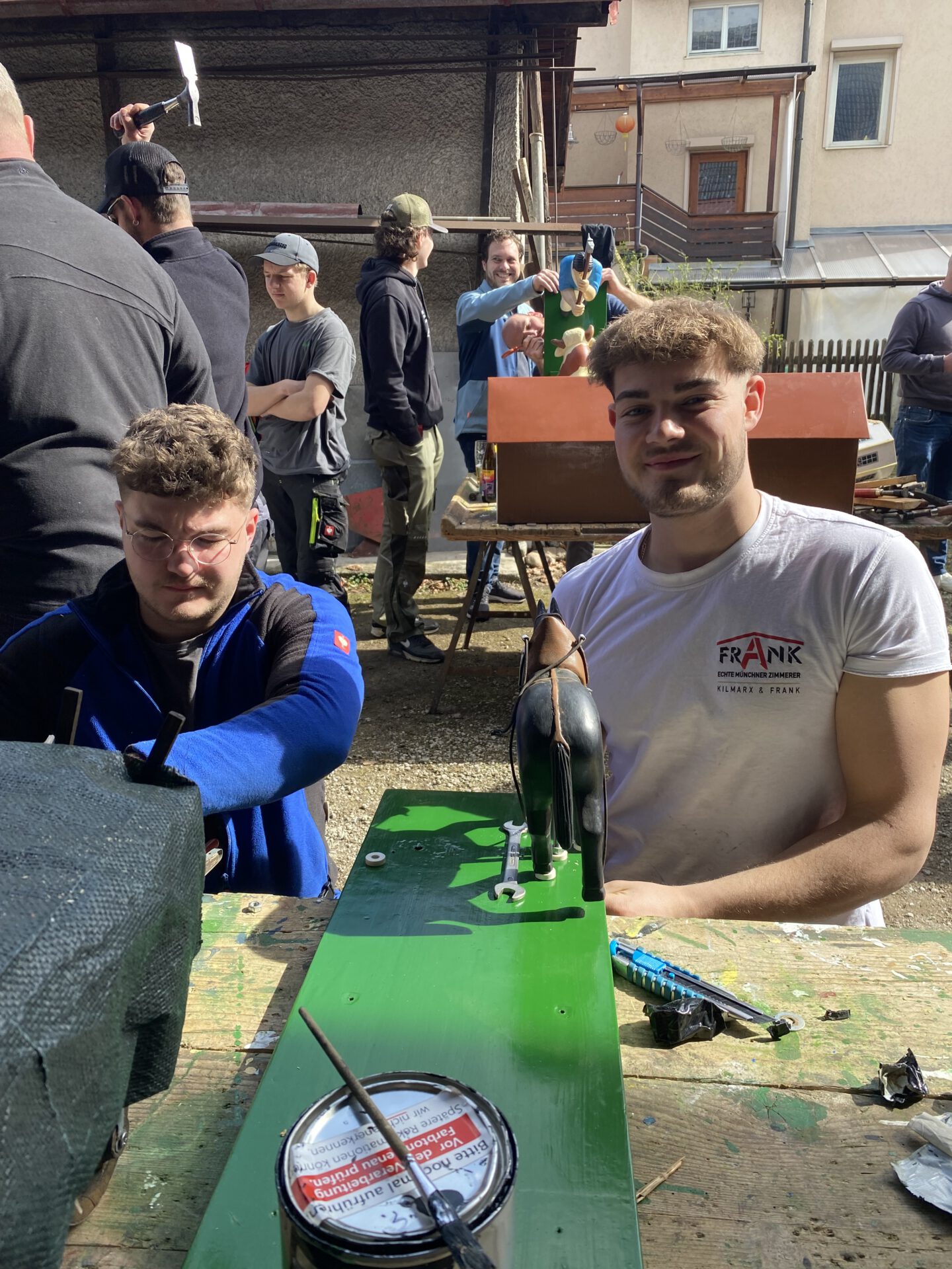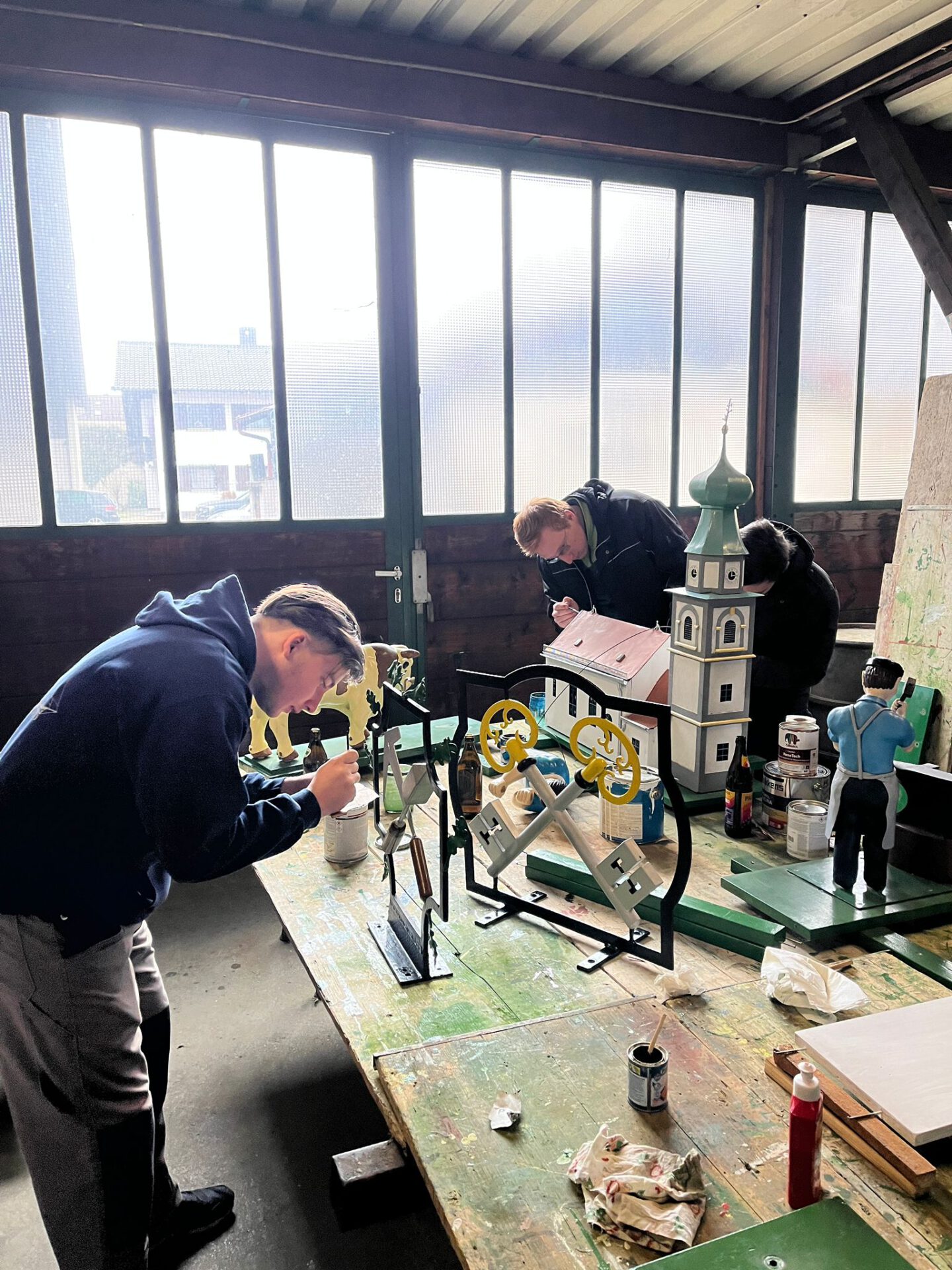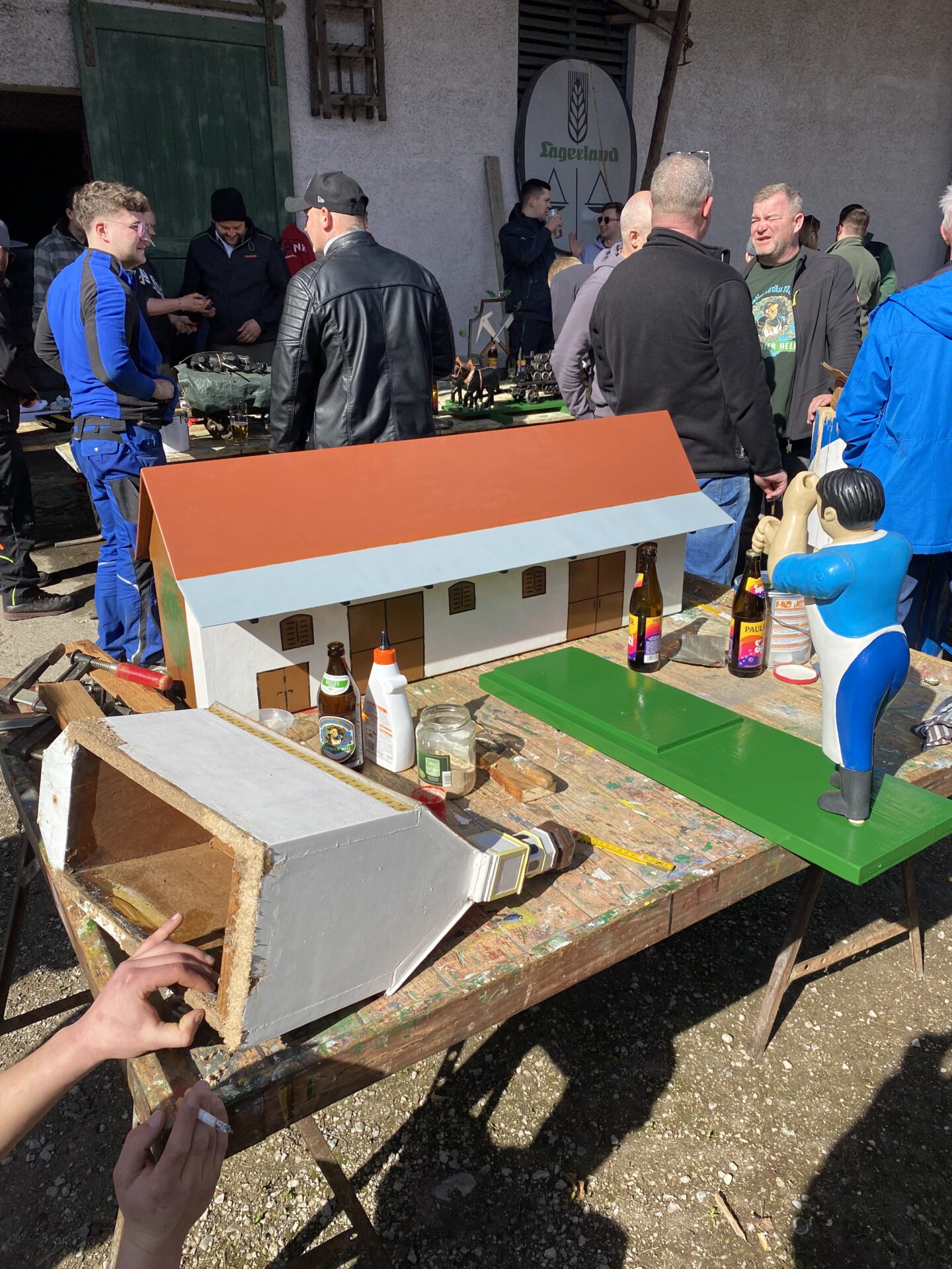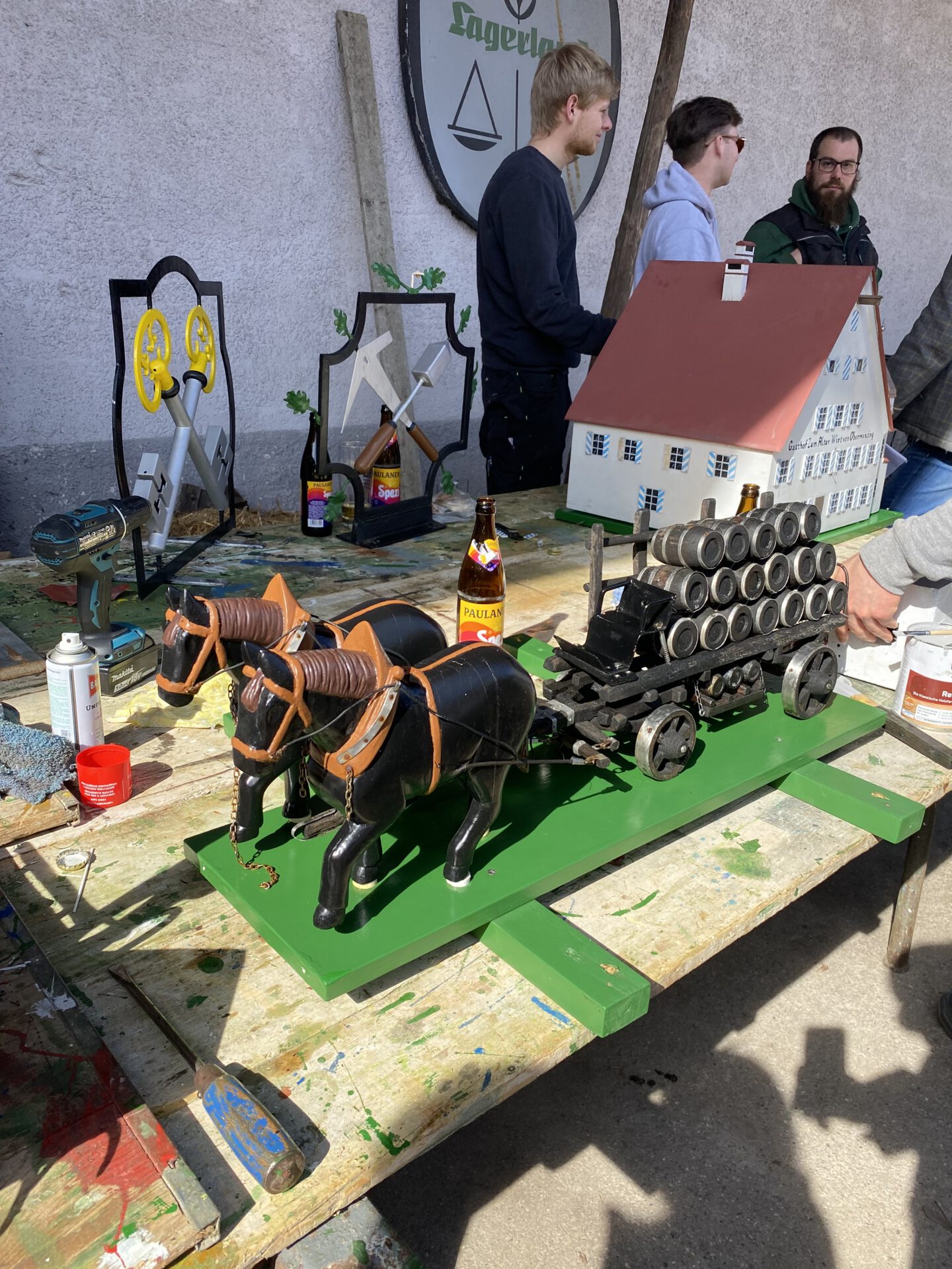 Jeden Herbst werden die Figuren abgenommen und sicher eingelagert, um sie vor Frost zu schützen. Im Frühjahr geht’s dann jeden Sonntag ans Herrichten: Schäden ausbessern, schleifen, lackieren, auf Hochglanz bringen. Am 1. Mai werden sie dann wieder feierlich am Maibaum montiert.