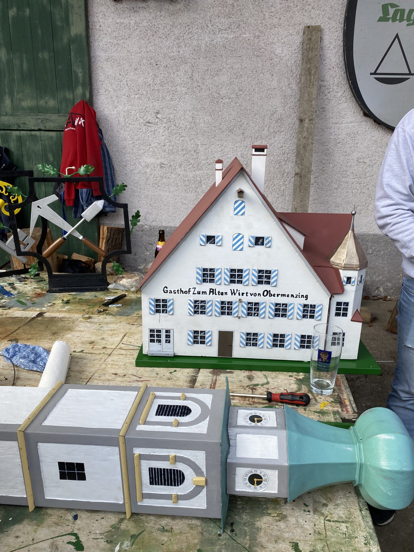 Was unseren Maibaum wirklich besonders macht, sind die Figuren. Dreidimensional, aus Holz und Metall gefertigt und allesamt selbst gemacht. Sie zeigen Gewerke, Berufe und Gebäude aus Obermenzing. Einige von ihnen sind so alt wie der Verein selbst – also über 100 Jahre.